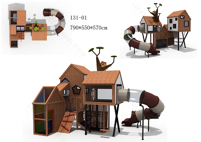 兒童戶外組合滑梯魔幻樹屋-綠森堡