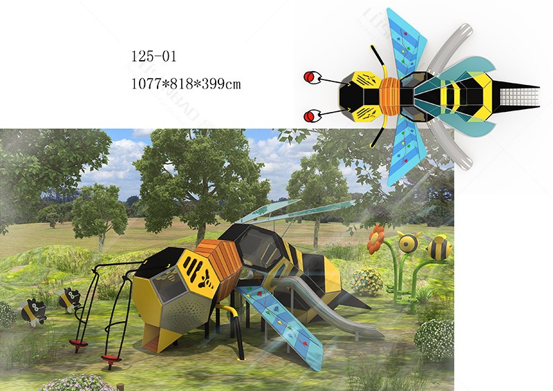 戶外非標定制木質(zhì)拓展組合滑梯蜜蜂造型