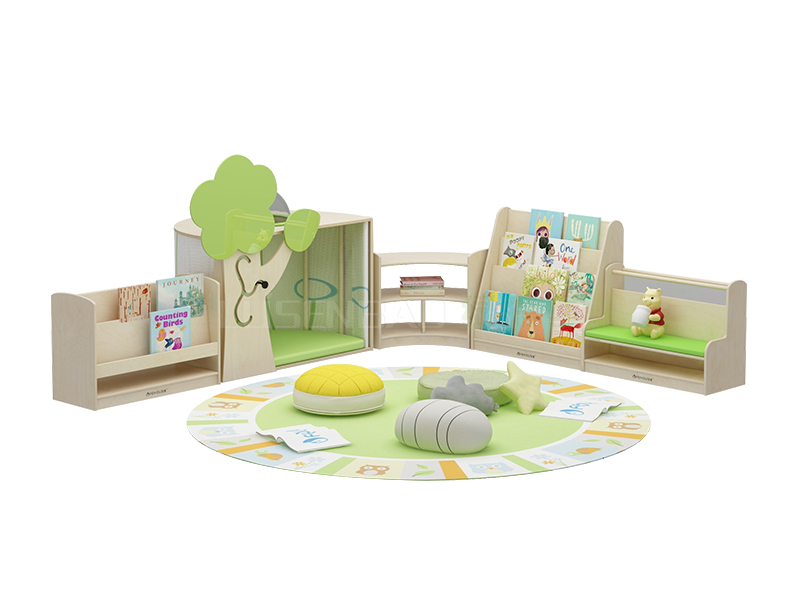 幼兒園家具樺木閱讀區(qū)角書(shū)架柜