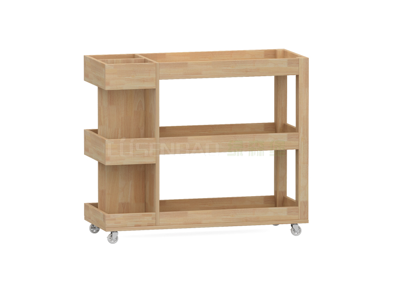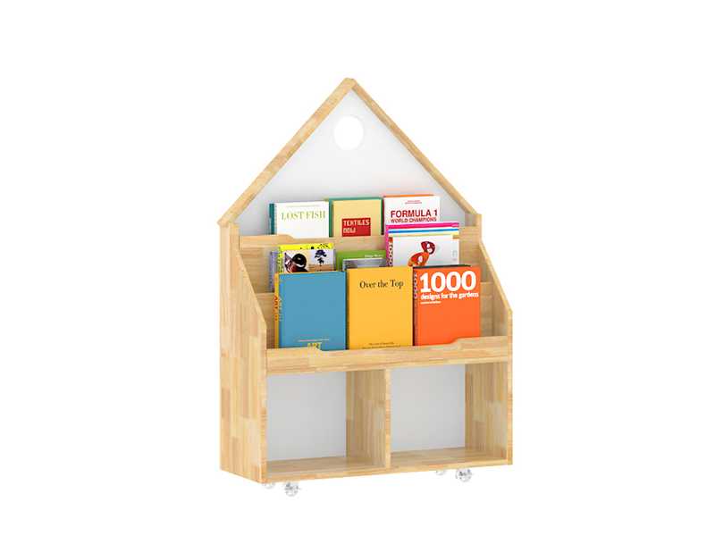 幼兒園家具美術(shù)室實(shí)木移動(dòng)書(shū)架