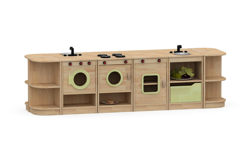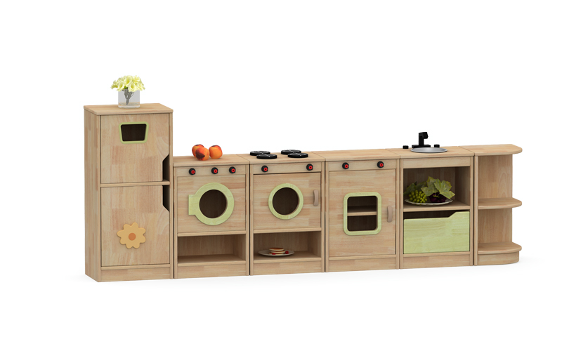 幼兒園實(shí)木家具水性漆寶寶學(xué)習(xí)互動(dòng)兒童組合柜灶臺(tái)