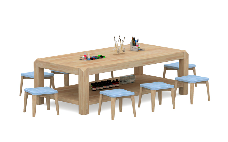 幼兒園美術(shù)區(qū)實木家具寶寶學習互動多功能組合桌子椅子